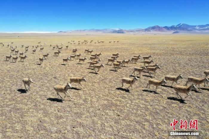 The Tibetan antelope is under first-class state protection in China. The wild animals can be seen mainly in areas along the Qiangtang Grassland at altitudes between 3,700 and 5,500 meters above sea level. According to statistics, the number of Tibetan antelopes in Tibet has increased to about 300,000 in recent years, up from about 60,000 in the 1990s.
