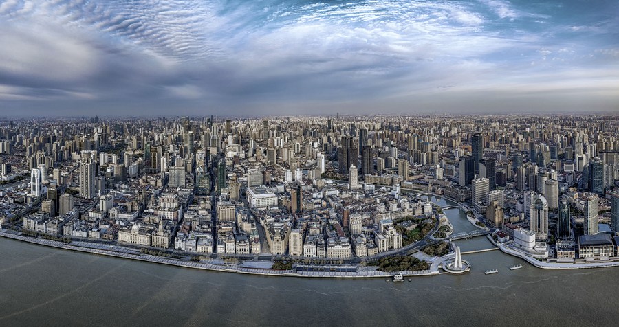 Aerial photo taken on the early morning of April 1, 2022 shows areas west of the Huangpu River in east China's Shanghai. (Photo by Yang Fan/Xinhua)