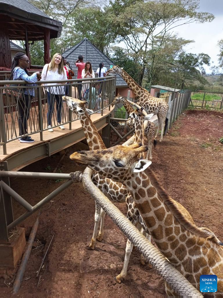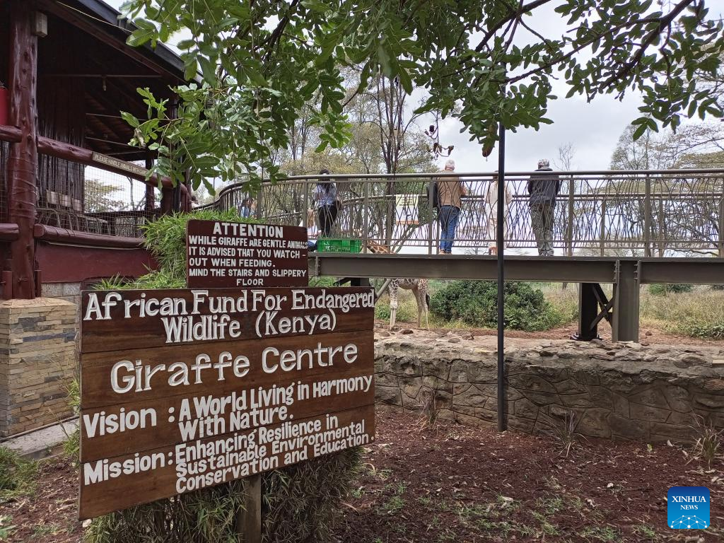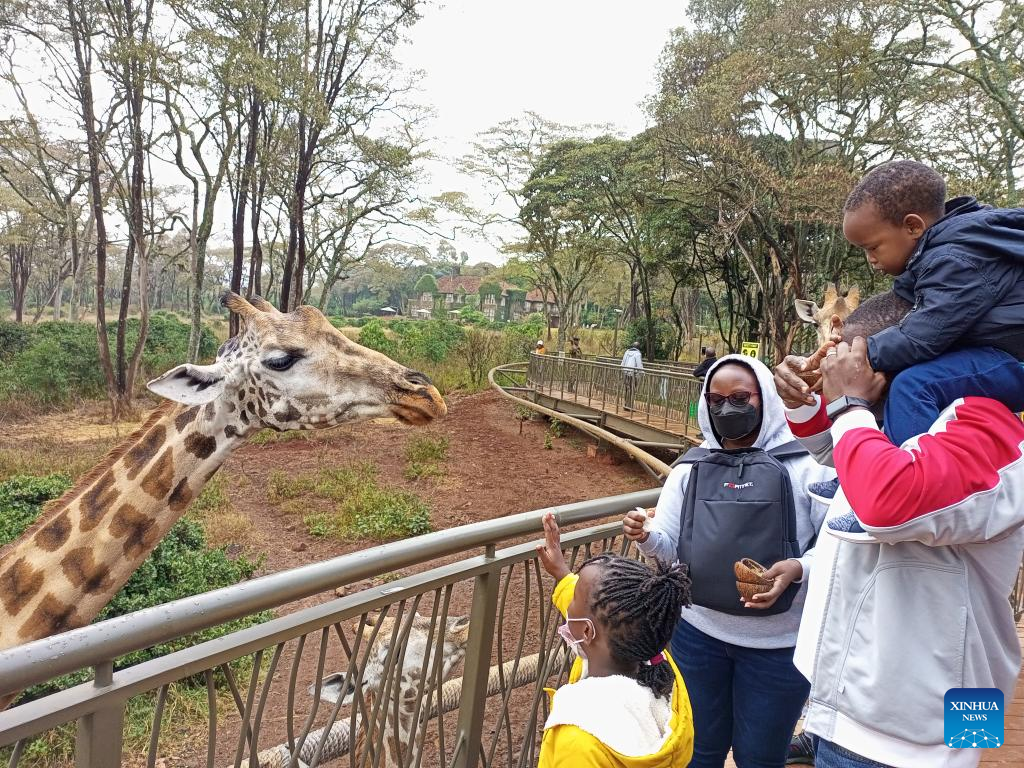 People visit the Giraffe Centre in Nairobi, Kenya, April 2, 2022. (Xinhua/Bai Lin)