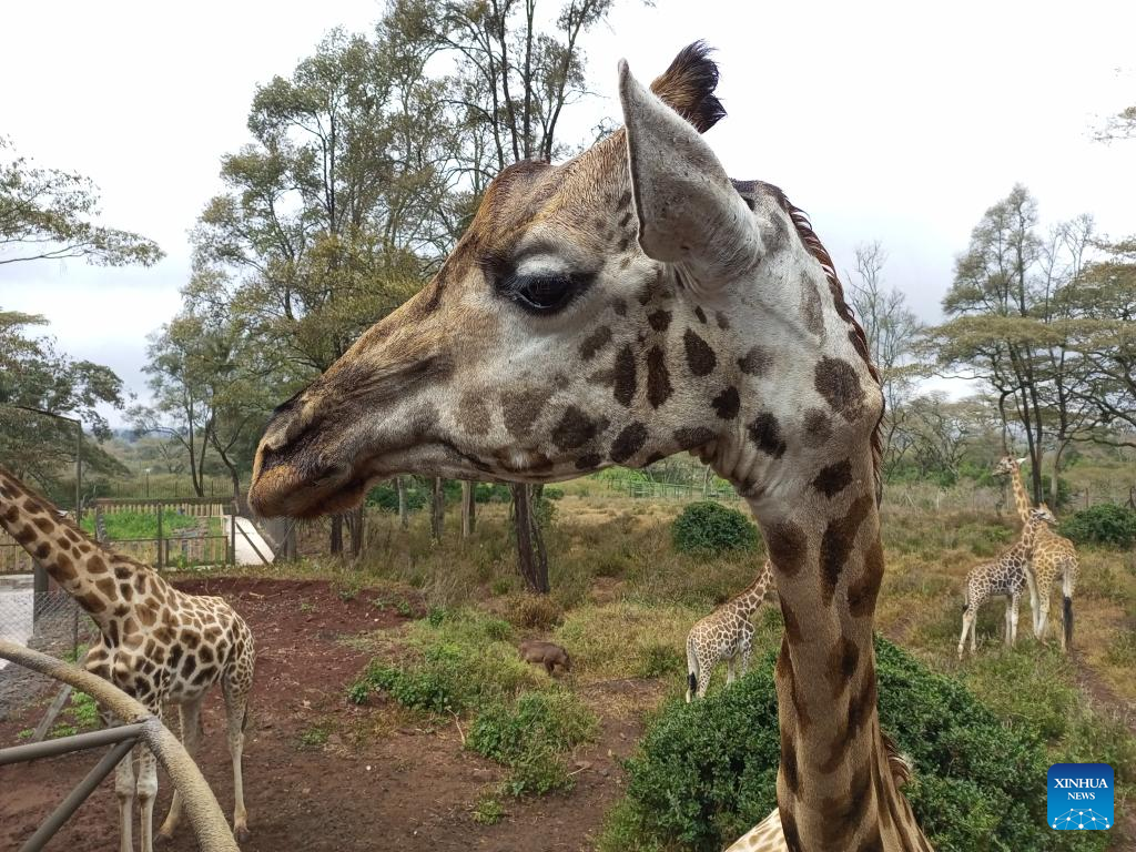 A giraffe is seen at the Giraffe Centre in Nairobi, Kenya, April 2, 2022. (Xinhua/Bai Lin)