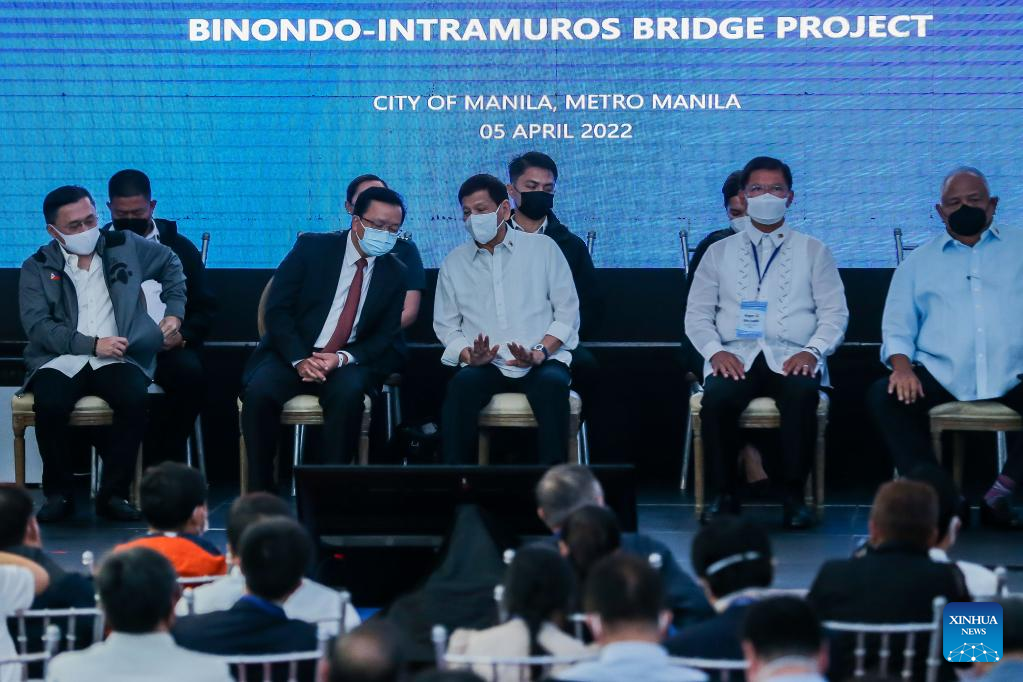 MANILA, April 5 (Xinhua) -- Philippine President Rodrigo Duterte led the unveiling of an iconic China-gifted bridge that connects two busy districts in Manila City on Tuesday.
