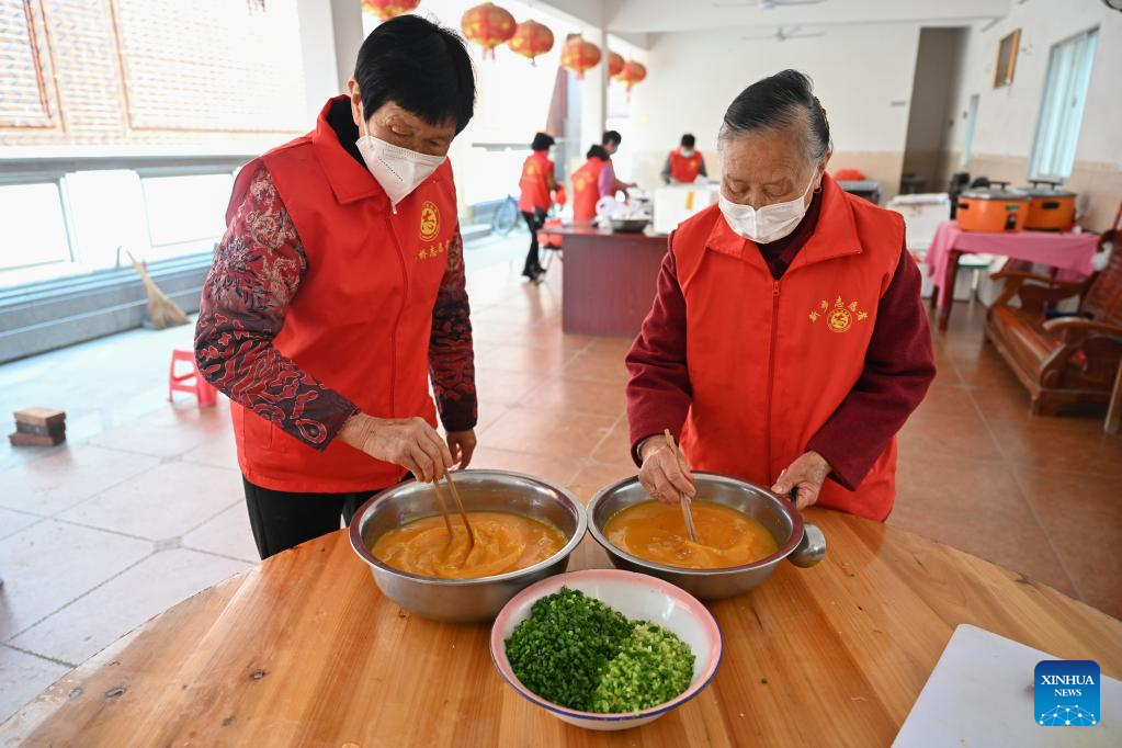 Volunteer grannies cook at Xinbu Community in Quanzhou, southeast China's Fujian Province, April 5, 2022.