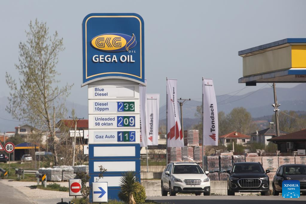 Fuel prices are pictured in Tirana, Albania, April 6, 2022. Due to the rise of energy prices, Albanian markets witnessed the sharp price rise of fuel, cooking oil, flour, etc. (Photo by Gent Onuzi/Xinhua)