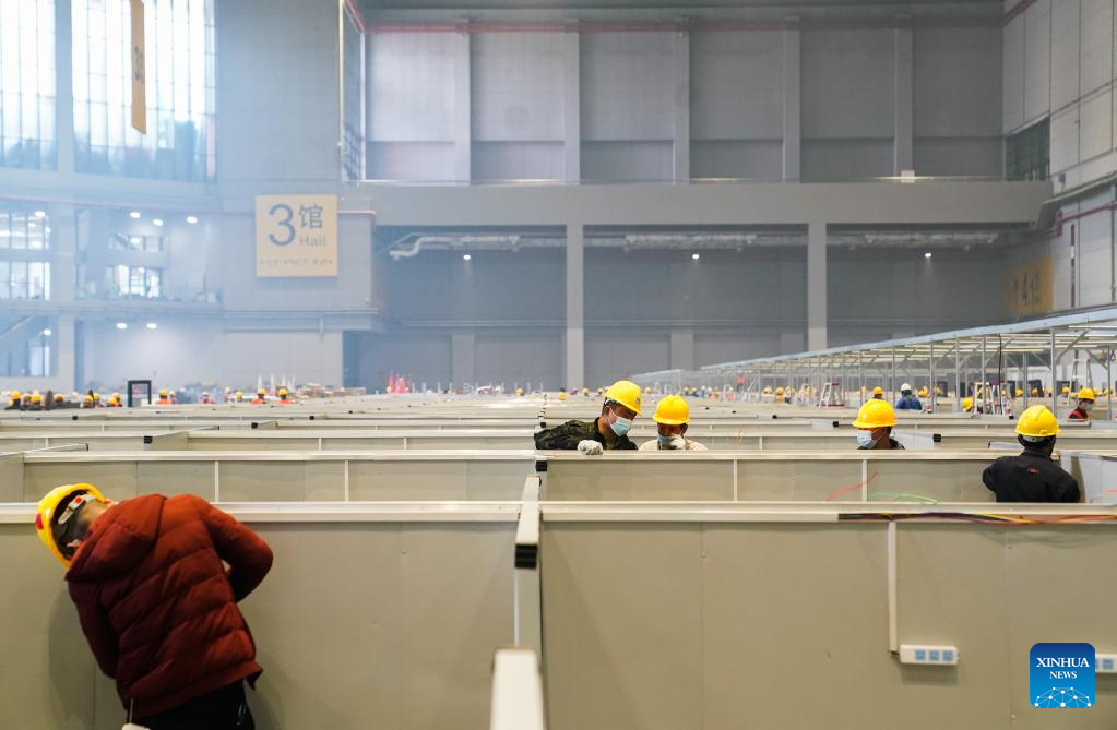 Shanghai is converting the National Exhibition and Convention Center (NECC) into a makeshift hospital with a planned capacity of 40,000 beds. Upon completion, it is expected to act as the biggest such hospital for those testing positive for COVID-19 in the metropolis. (Xinhua/Ding Ting)