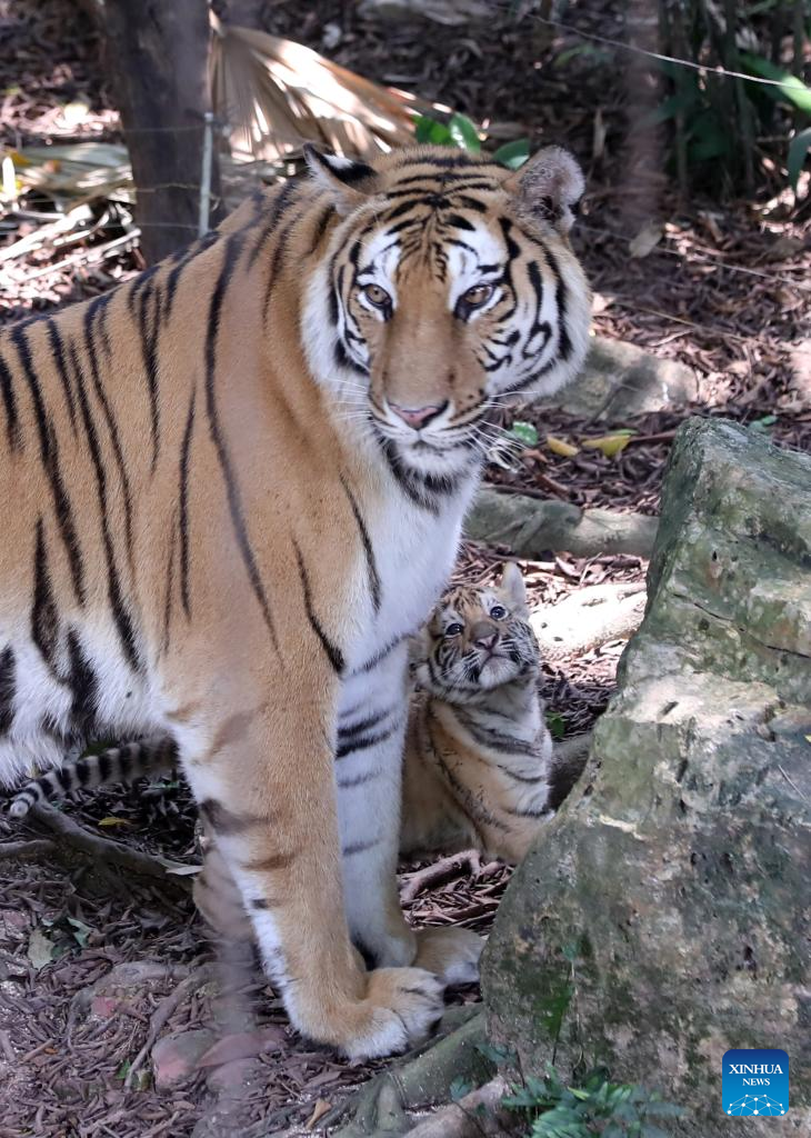 Bengal tiger "Weiwei" and her cub are seen at the Chimelong Safari Park in Guangzhou, south China's Guangdong Province, April 7, 2022.