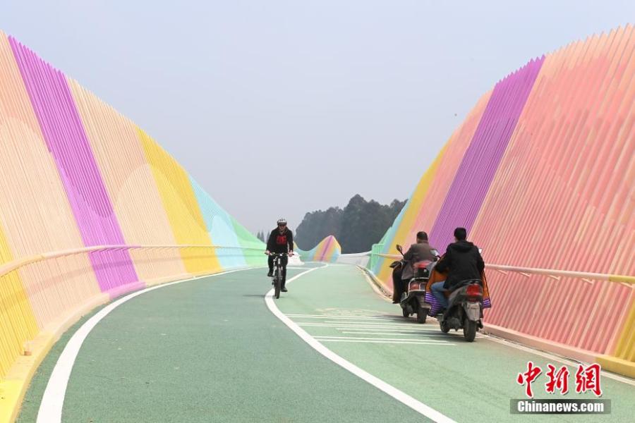 A man rides a bike on the newly built bridge in Chengdu, southwest China's Sichuan Province, April 7, 2022. (Photo: China News Service/An Yuan)