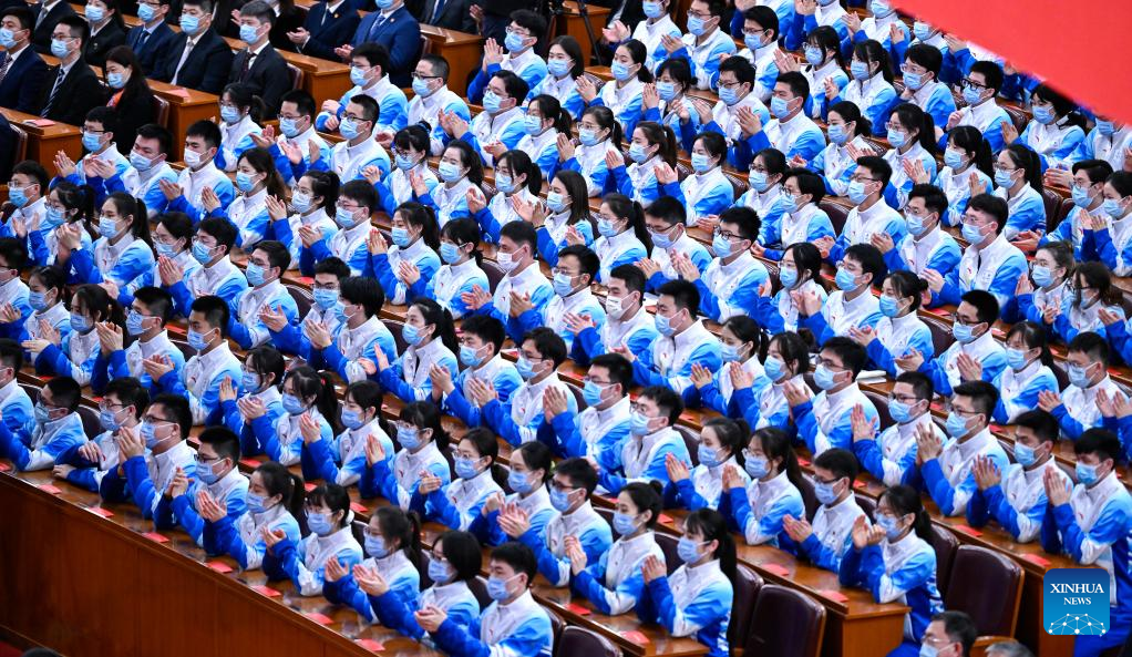 A gathering to honor those who have made outstanding contributions to the Beijing 2022 Olympic Winter Games and the Beijing 2022 Paralympic Winter Games is held at the Great Hall of the People in Beijing, capital of China, April 8, 2022. (Xinhua/Zhai Jianlan)