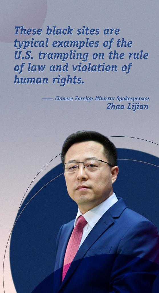 "Facts speak louder than words," Zhao said, noting that the U.S. black sites around the world fully indicate that the U.S. has no right to point a finger at any other country in the name of democracy and human rights.