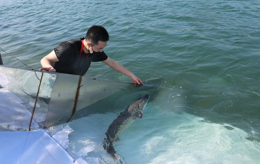 The fish were released in the city of Yichang, central China's Hubei Province, in the 65th sturgeon release event carried out by the China Three Gorges Corporation (CTGC).