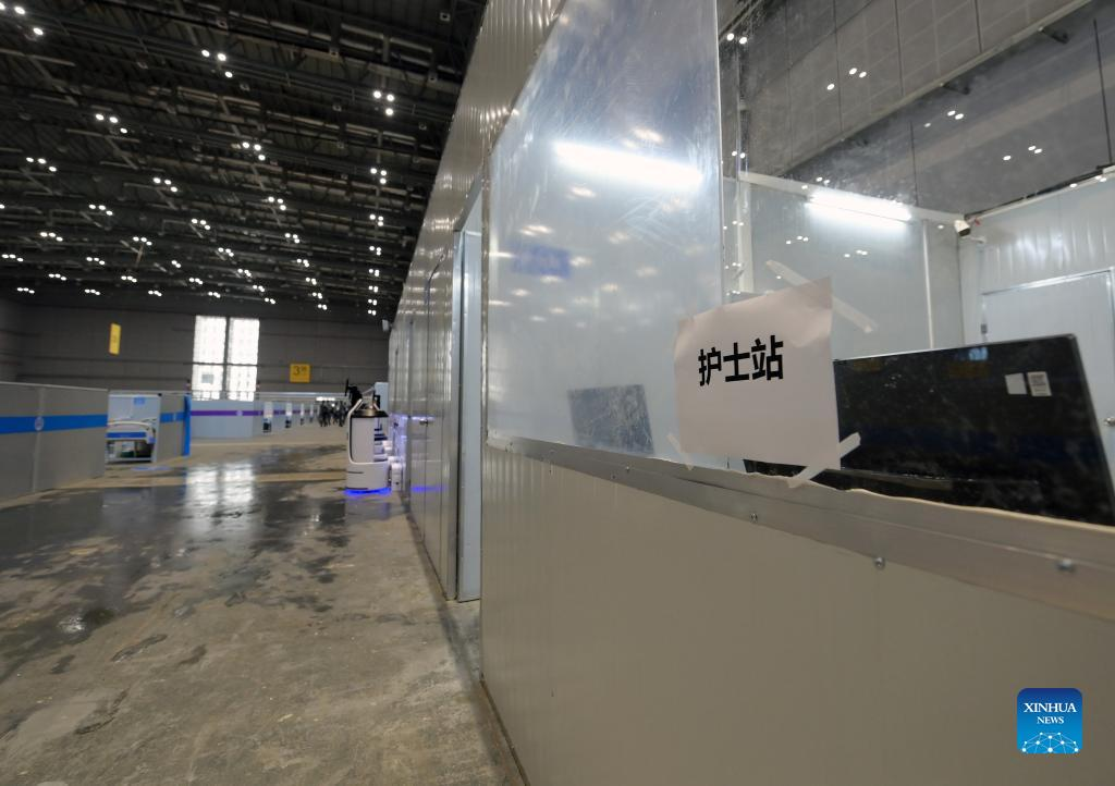 Photo taken on April 9, 2022 shows the interior view of a makeshift hospital converted from the National Exhibition and Convention Center (Shanghai) in east China's Shanghai. (Xinhua/Li He)