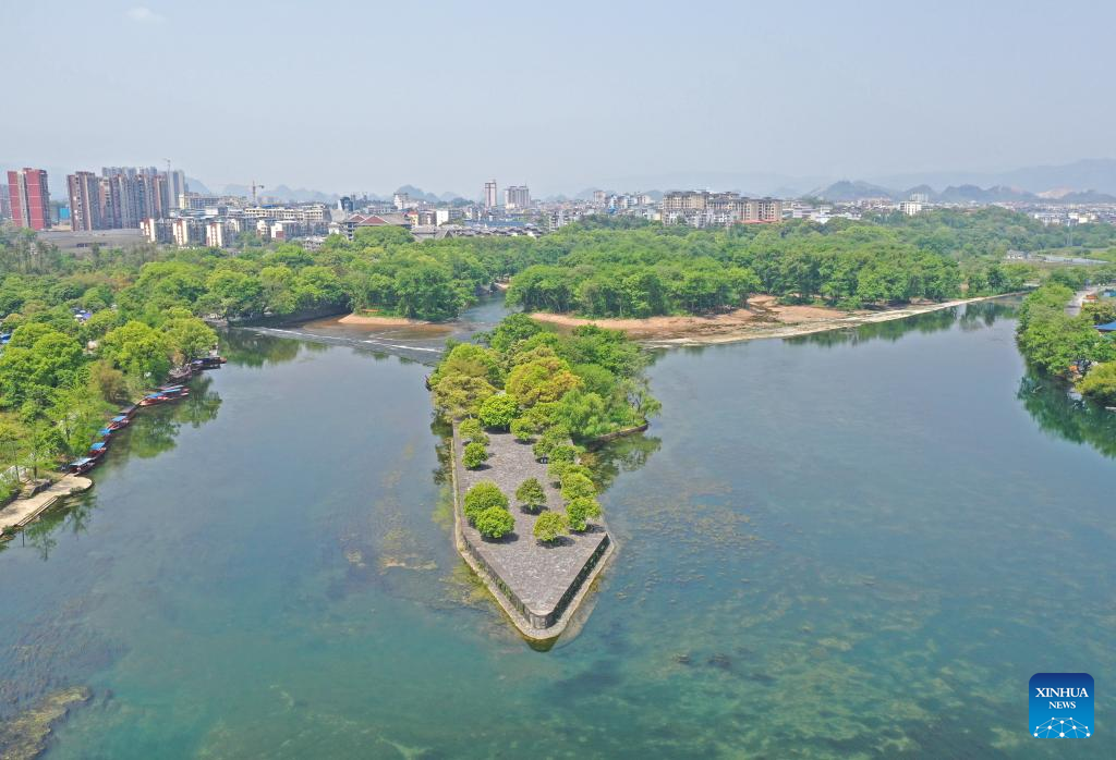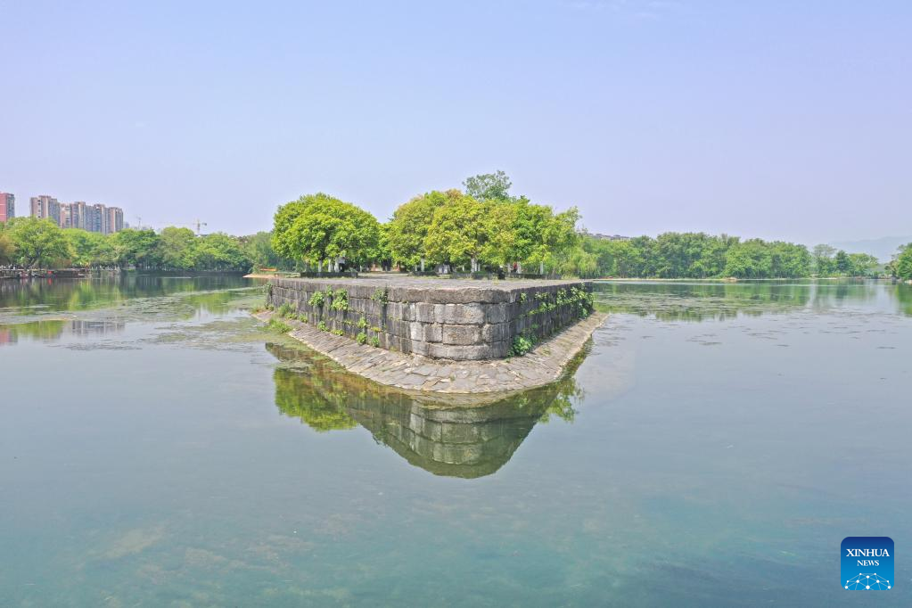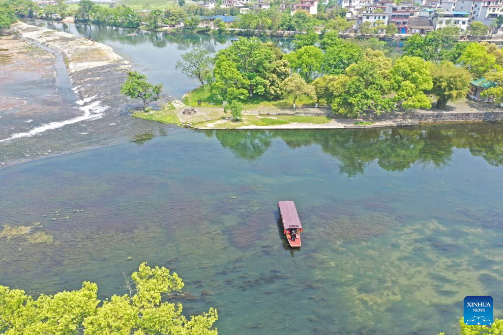 Photo taken on April 9, 2022 shows Lingqu Canal in Xing'an County, south China's Guangxi Zhuang Autonomous Region. Lingqu, one of the world's oldest and most well-preserved artificial canals, was inscribed on the World Heritage Irrigation Structures in 2018. (Xinhua/Zhou Hua)