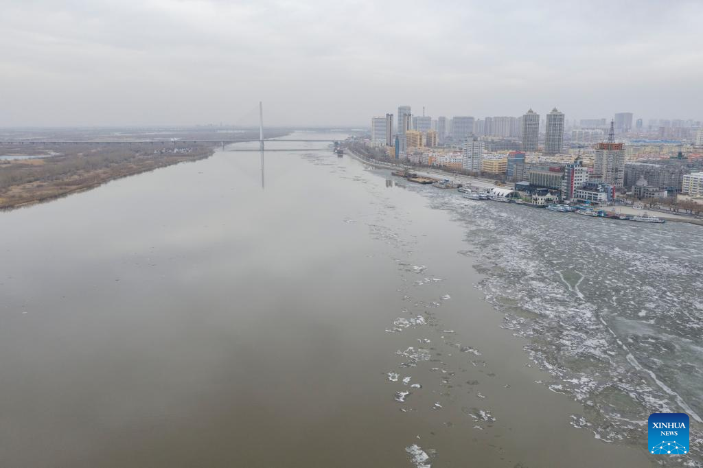 Ice flow occurs in Harbin section of Songhua River in NE China