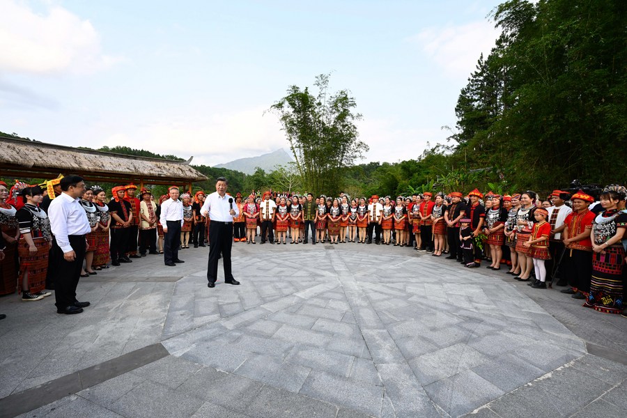 Xi visited a section of a tropical rainforest national park and a village to learn about efforts to protect the environment and biodiversity, as well as the alignment of rural revitalization with the achievements in poverty alleviation.