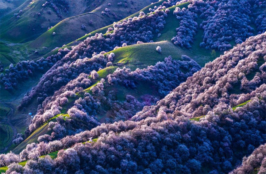 Spring is the best season for tourists to hike in the wild apricot forests of the Narathi Apricot Valley, Xinyuan county, northwest China's Xinjiang Uygur Autonomous Region. (Photo/Yang Xiaoqian)