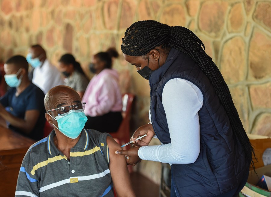 A man receives a booster shot of COVID-19 vaccine in Gaborone, Botswana, on Jan. 17, 2022. (Tshekiso Tebalo/Xinhua)