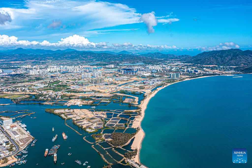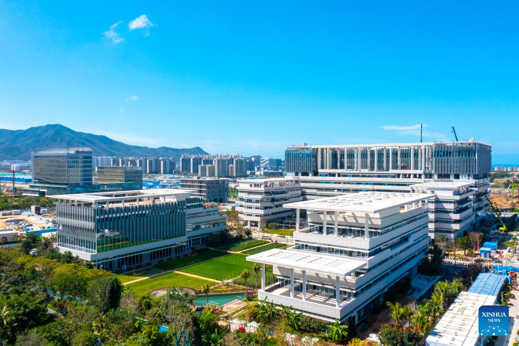 Aerial photo taken on March 23, 2022 shows the Yazhou Bay science and technology city in Sanya, south China's Hainan Province. The Yazhou Bay Seed Laboratory, which opened in May last year, has gathered over 800 research staff to work toward seed industry innovation in Hainan in collaboration with 19 member institutions. The laboratory is situated in the Nanfan breeding base in Hainan, which is dubbed the "silicon valley" of China's seed industry. Thousands of scientists from across the country visit the base each year to undertake seed breeding, thanks to its unique light and heat resources. (Xinhua)