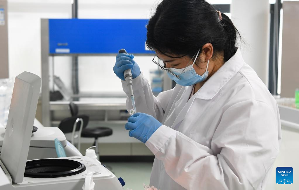 A researcher conducts experiments at the Yazhou Bay Seed Laboratory in Sanya, south China's Hainan Province, Nov. 24, 2021. The Yazhou Bay Seed Laboratory, which opened in May last year, has gathered over 800 research staff to work toward seed industry innovation in Hainan in collaboration with 19 member institutions. The laboratory is situated in the Nanfan breeding base in Hainan, which is dubbed the "silicon valley" of China's seed industry. Thousands of scientists from across the country visit the base each year to undertake seed breeding, thanks to its unique light and heat resources. (Xinhua/Yang Guanyu)