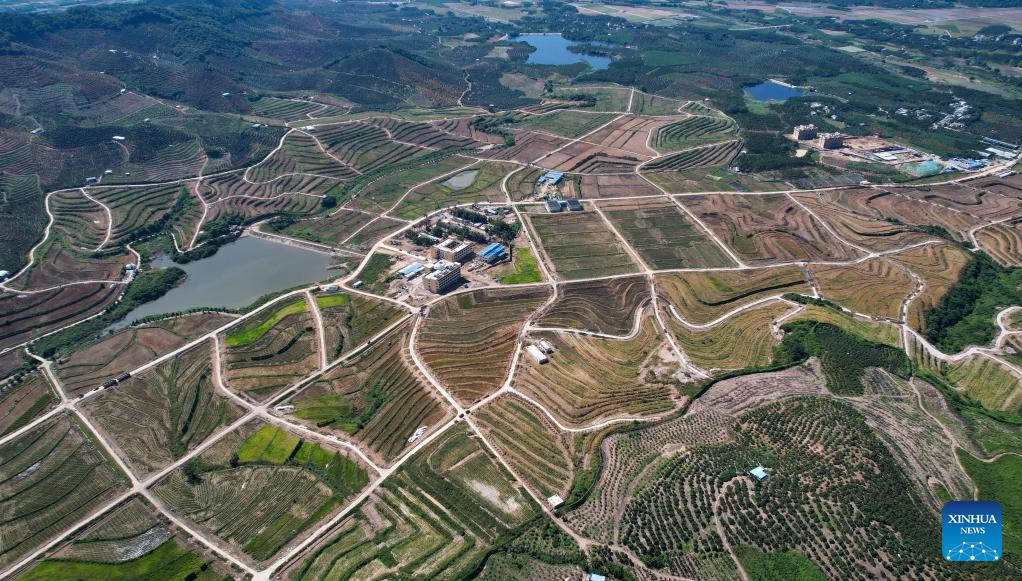Aerial photo taken on April 1, 2022 shows the Nanfan seed breeding base in Sanya, south China's Hainan Province. The Yazhou Bay Seed Laboratory, which opened in May last year, has gathered over 800 research staff to work toward seed industry innovation in Hainan in collaboration with 19 member institutions. The laboratory is situated in the Nanfan breeding base in Hainan, which is dubbed the "silicon valley" of China's seed industry. Thousands of scientists from across the country visit the base each year to undertake seed breeding, thanks to its unique light and heat resources. (Xinhua/Zhang Liyun)