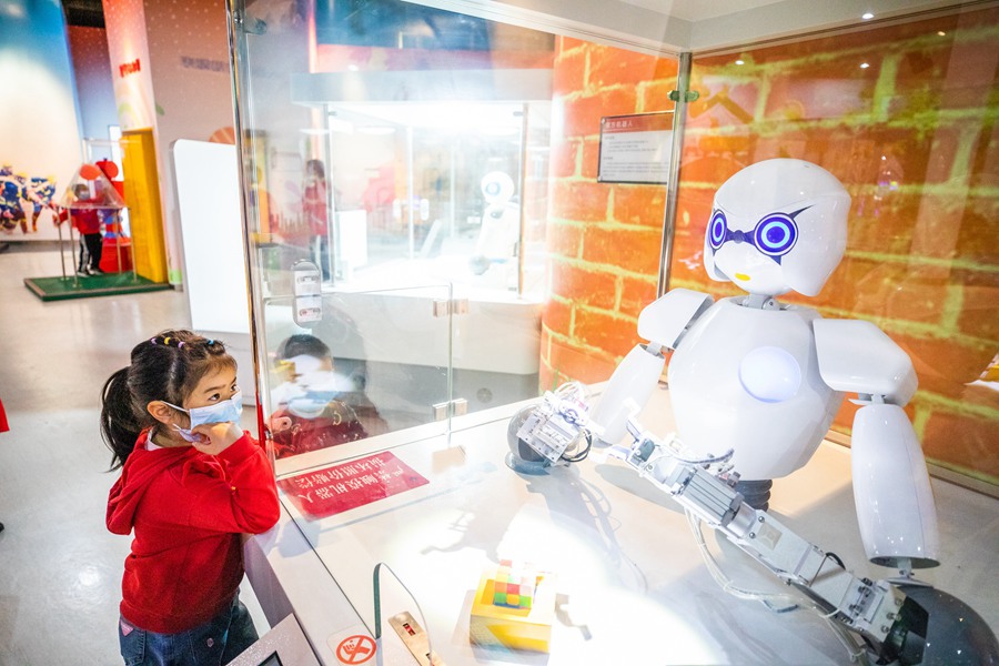 Children visit the science museum of Bijie, southwest China’s Guizhou province, April 10, 2022. (Photo by Luo Dafu/People’s Daily Online)