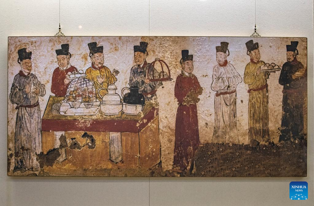 Photo taken on April 17, 2022 shows an exhibit in Chongqing China Three Gorges Museum in southwest China's Chongqing. The exhibition displays precious cultural relics including bronze wares, ceramics, furniture and murals of the dynasties of Liao (907-1125), Jin (1115-1234), and Yuan (1271-1368). (Xinhua/Huang Wei)