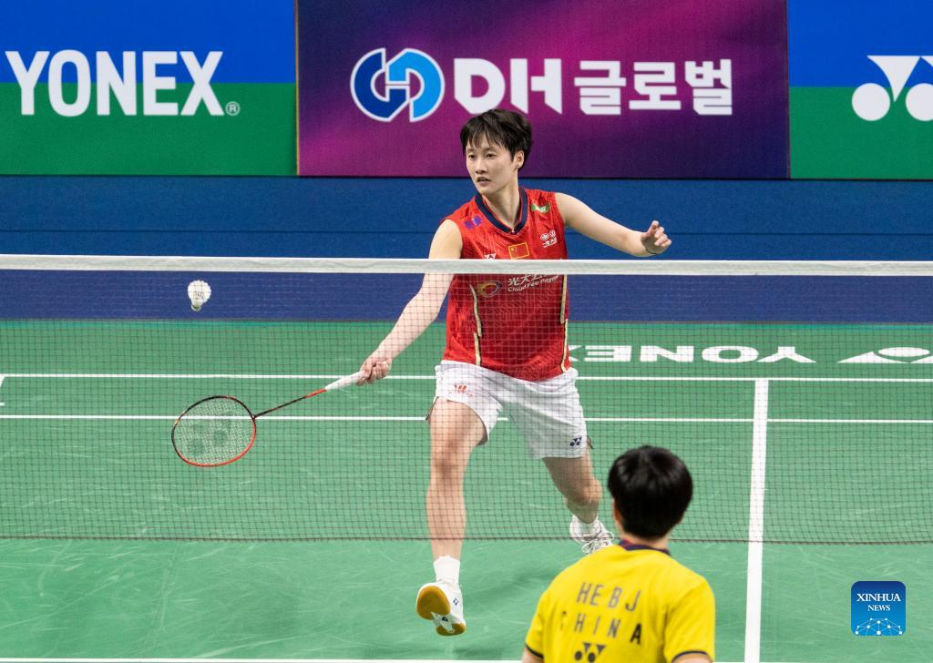 SEOUL, April 17 (Xinhua) -- China's He Bingjiao claimed the women's singles title, while Wang Yilyu/Huang Dongping took the mixed doubles crown at the 2022 South Korea Badminton Masters held in Gwangju, South Korea on Sunday.