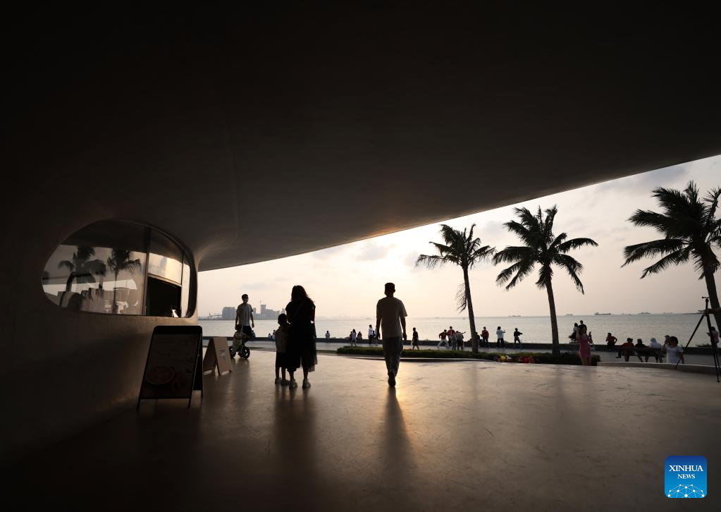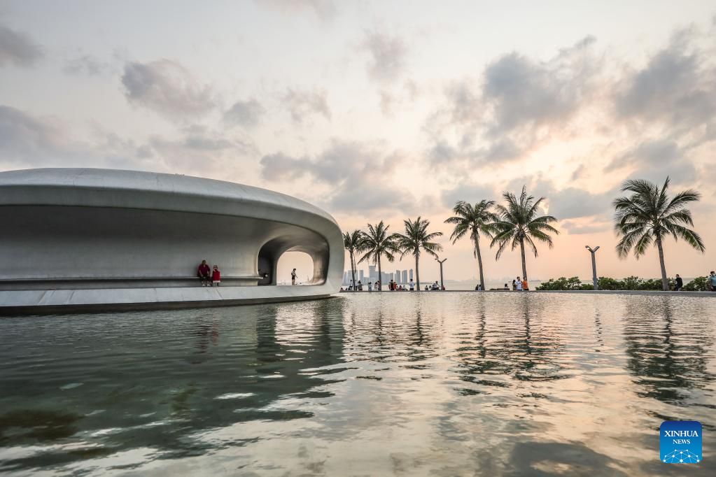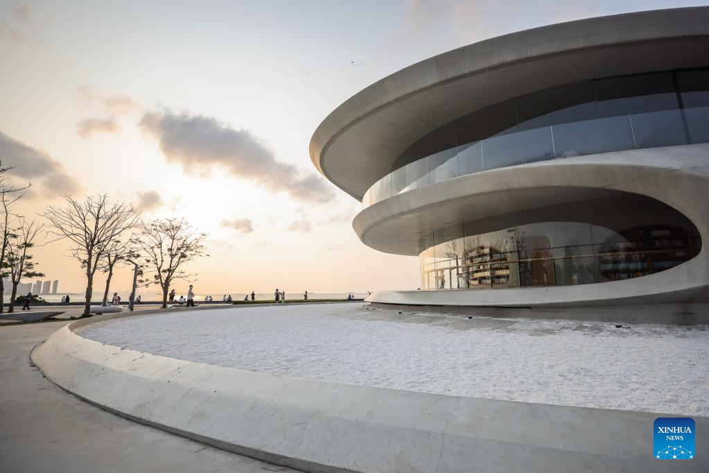Photo taken on April 15, 2022 shows the Wormhole Library in the Haikou Bay in Haikou, south China's Hainan Province. (Xinhua/Zhang Liyun)