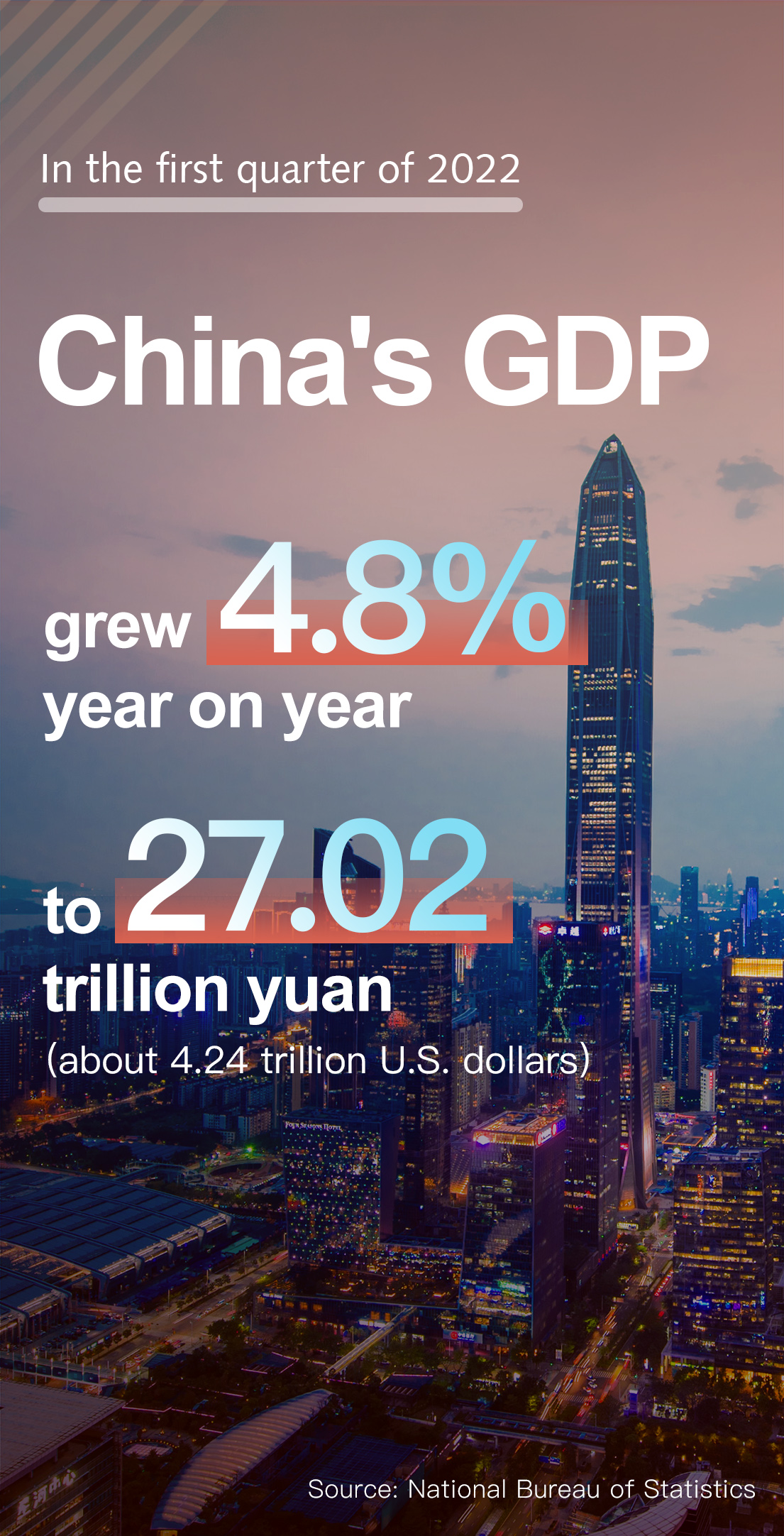 BEIJING, April 18 (Xinhua) -- China's economy grew 4.8 percent year on year in the first quarter, exceeding market expectations and picking up pace from a 4-percent increase in the fourth quarter last year.