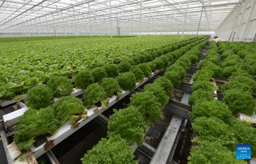 Photo taken on April 19, 2022 shows vegetables in a greenhouse at a planting base in Chongming District, east China's Shanghai. Vegetable production and processing enterprises in Chongming District have been making efforts to assure the vegetable supply to the urban areas amid the recent COVID-19 outbreak in the metropolis. (Xinhua/Li He)