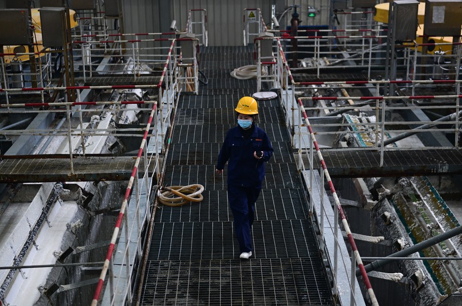 A staff member works at a potash fertilizer company in northwest China's Qinghai Province, April 1, 2022. (Xinhua/Zhang Long)