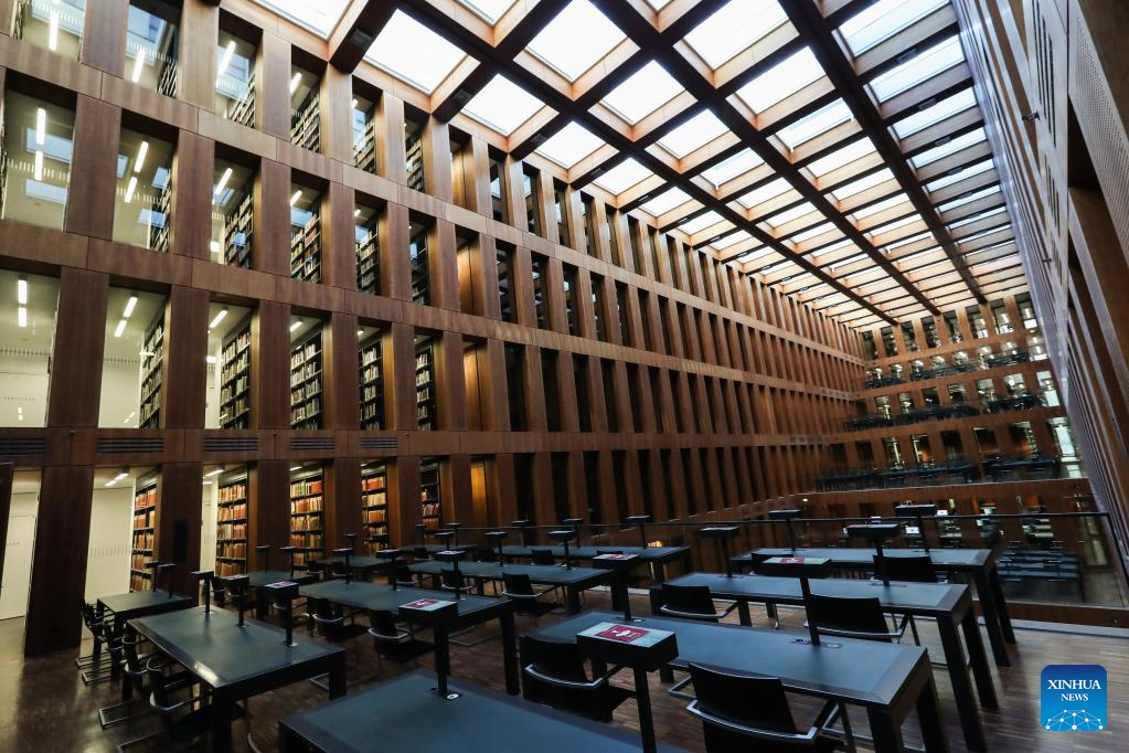 The Jacob and Wilhelm Grimm Center is an open-shelving library in Berlin. (Xinhua/Shan Yuqi)