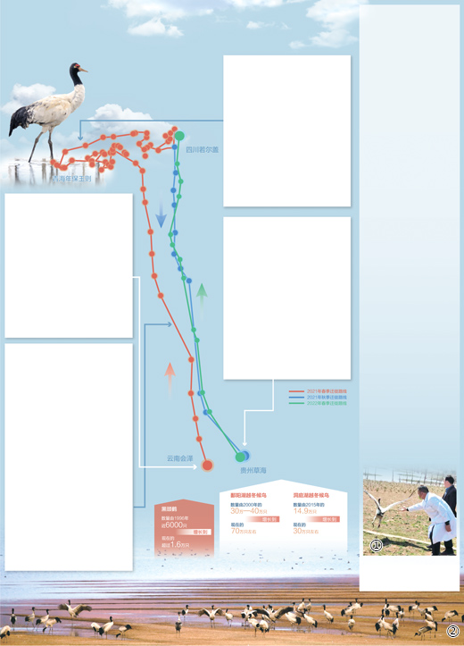 The migratory routes of a black-necked crane, a species under first-class state protection in China, which was fitted with a satellite-based tracker by an assistant researcher in China, reflect the country’s continuous efforts in protecting migratory birds.