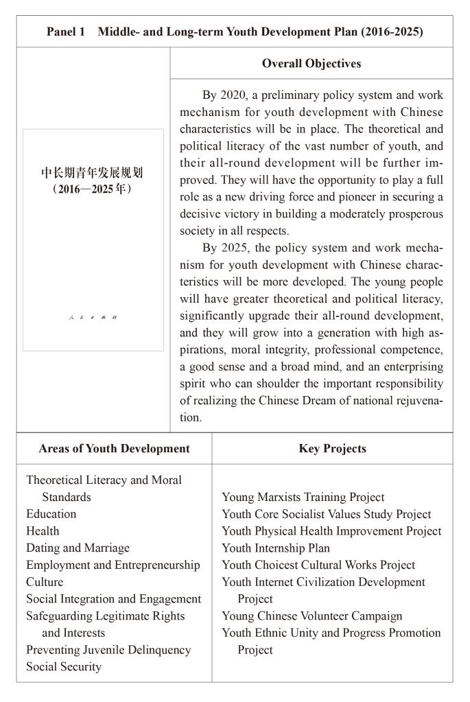 More considerate policy support. China has made policies and improved its policy system to cater to the diverse needs of young people in the country. Considerations for young people have been clearly embodied in the 13th and 14th Five-year Plans for National Economic and Social Development, and the needs of young people have been given particular attention when putting in place major national strategies, such as the strategy for invigorating China through science and education, the strategy on developing a quality workforce, the innovation-driven development strategy, the rural revitalization strategy, and the Healthy China initiative. Increasing attention and support have been given to young people in top-level design. In April 2017, the CPC Central Committee and the State Council issued the Middle- and Long-term Youth Development Plan (2016-2025), the first national-level plan directed towards young people in the history of the People's Republic of China, providing fundamental policy guidance for young people in China to grow and develop in the new era. The Party and the government have paid close attention to issues of immediate concern to young people in areas including job-hunting after graduation, innovation and entrepreneurship, social integration, dating and marriage, support for the elderly, and children's education. A series of policies and measures have been introduced, and the building of youth-development-friendly cities is in full swing, with the concept of prioritizing young people growing in popularity. Now, a basic mechanism for youth work from the central level to the local level has been generally put in place, and a preliminary policy system for youth development with Chinese characteristics has taken shape. Young people have been benefiting from the policies fully and they feel that they have been taken care of and their important needs are being addressed.