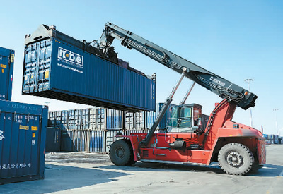 Containers are transported at the Harbin International Container Center of China Railway Harbin Group Co., Ltd. in northeast China’s Heilongjiang Province. (Xinhua/Xie Jianfei)