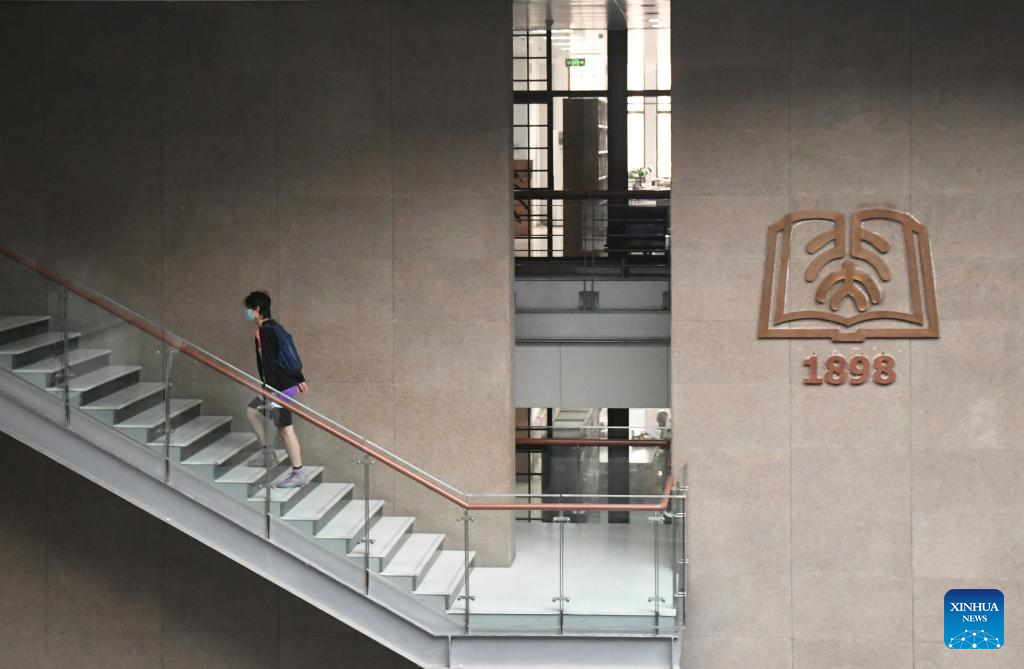 Photo taken on April 21, 2022 shows the interior view of Peking University Library in Beijing, capital of China.