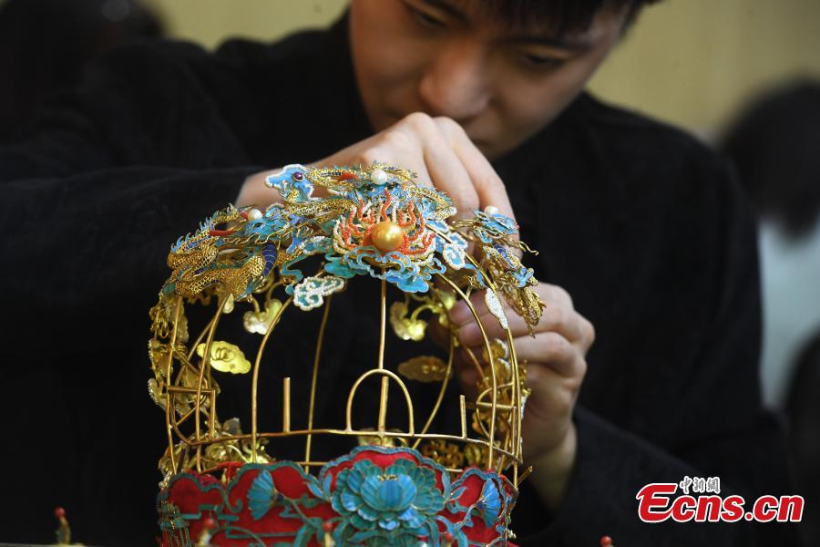Young man creates fine filigree inlay ornaments in Chongqing (2)