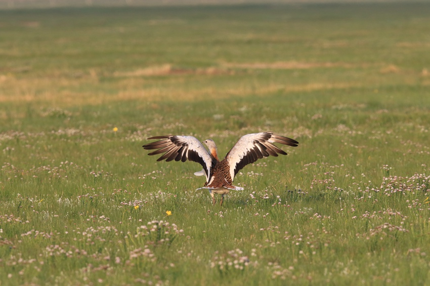 Endangered great bustards make spring journey back to nature reserve in N China's Inner Mongolia (5)