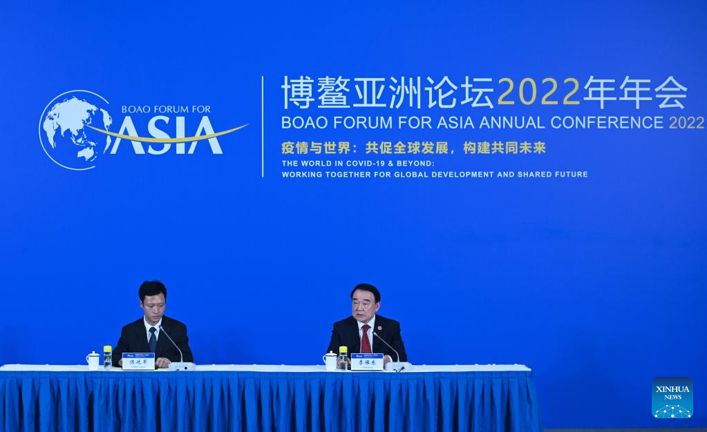 The closing press conference of the 2022 Boao Forum for Asia (BFA) annual conference is held in Boao, south China's Hainan Province, April 22, 2022. The three-day 2022 BFA annual conference concluded here on Friday. (Xinhua/Yang Guanyu)