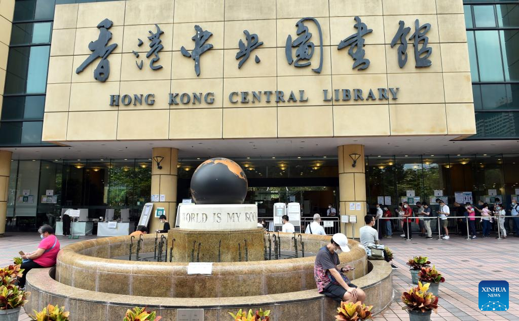 People line up to enter Hong Kong Central Library on World Book Day in Hong Kong, south China, April 23, 2022. (Xinhua/Lo Ping Fai)