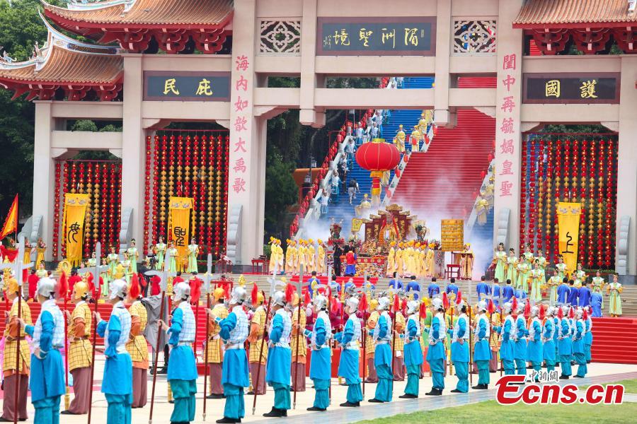 A grand ceremony marking the 1,062nd birthday of the sea goddess Mazu is held in her birthplace of Meizhou of Putian City, east China's Fujian Province, April 23, 2022. (Photo: China News Service/Lin Chunsheng)