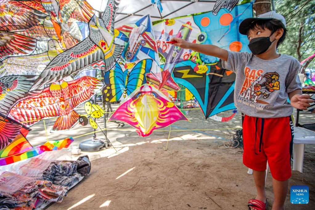 A child selects kites at the Cha-am Beach in Phetchaburi, Thailand, on April 23, 2022. Kite enthusiasts and visitors gathered on Saturday at Cha-am Beach in Thailand's southern Phetchaburi province to enjoy the annual international kite festival. (Xinhua/Wang Teng)