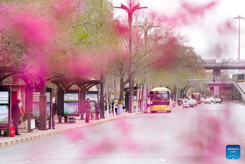 Buses run on a road in Harbin, northeast China's Heilongjiang Province, April 26, 2022. Harbin has updated its epidemic control and prevention measures from April 26 to 29 in six districts including Daoli, Daowai, Nangang, Xiangfang, Pingfang and Songbei, according to local authority.