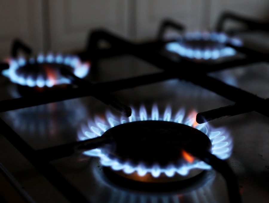 Photo taken on March 10, 2022 shows burning rings on a gas cooker in London, Britain. (Xinhua/Li Ying)