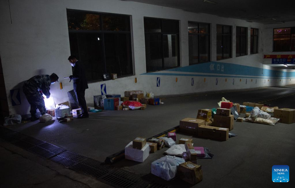 Community workers sort parcels in a community in Chaoyang District of Beijing, capital of China, April 27, 2022.