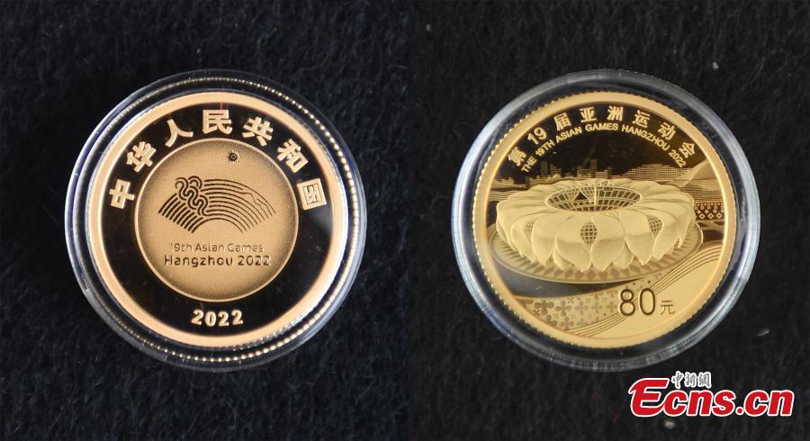 Photo shows the front side and the reverse side of the 5-gram gold coin. (Photo: China News Service/Wang Gang)