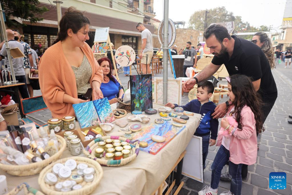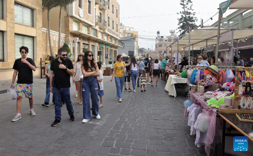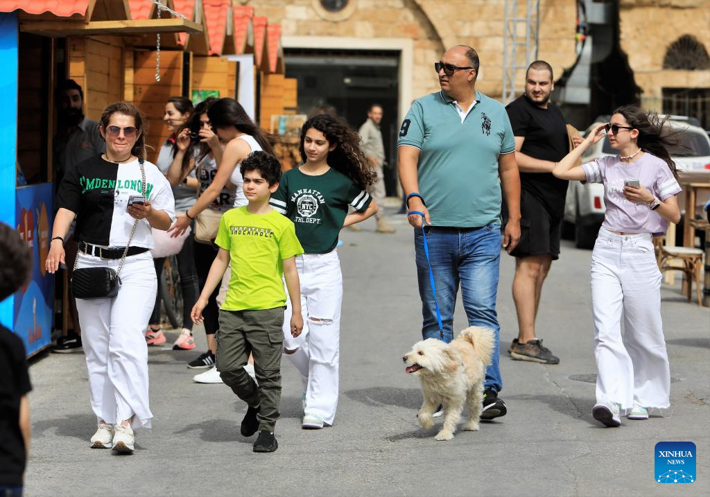 People visit a spring fair in Batroun, northern Lebanon, on April 30, 2022. (Xinhua/Liu Zongya)