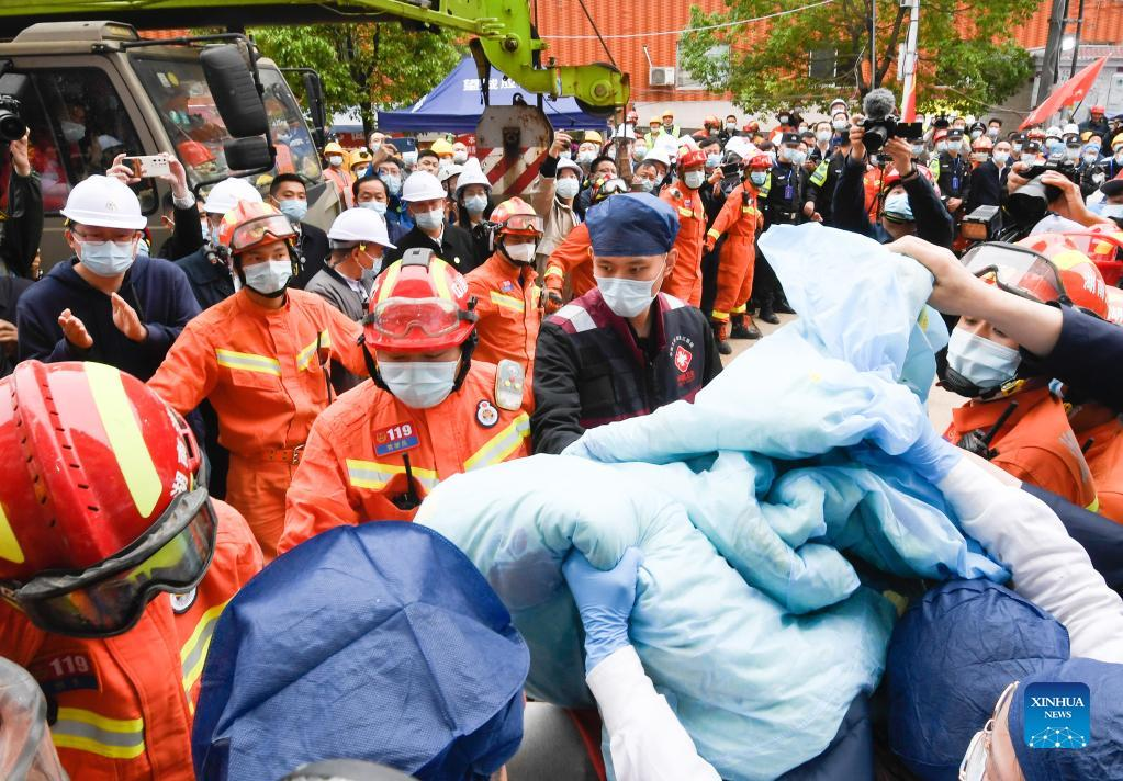 Rescuers work at the collapse site of a self-constructed residential building in Changsha, central China's Hunan Province, May 1, 2022. Six people have been rescued after a self-constructed residential building collapsed Friday in central China's Hunan Province. The incident took place at 12:24 p.m. in Wangcheng District in Changsha. Further investigations are underway. (Xinhua/Shen Hong)