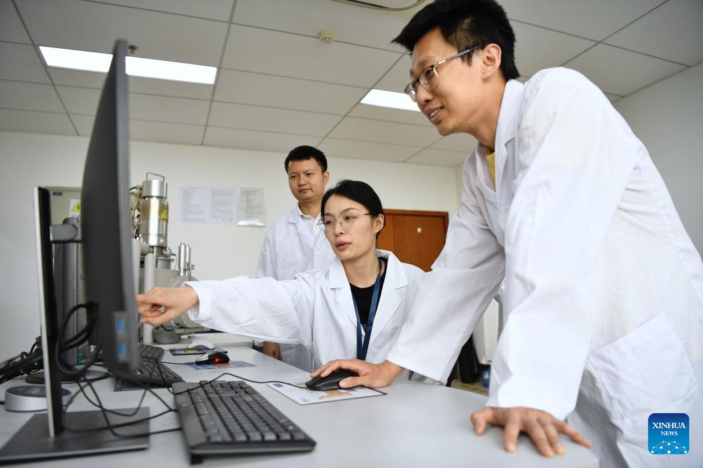 Members of a R&D team work in a laboratory of Nuclear Power Institute of China in Chengdu, southwest China's Sichuan Province, April 28, 2022. Fuel assemblies are the core of nuclear reactor. Engineers and researchers of Nuclear Power Institute of China have worked for years to develop China's own fuel assembly of commercial nuclear power plants, which was previously dominated by foreign technology.