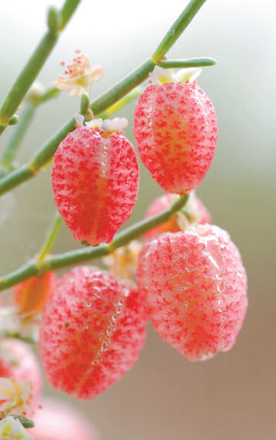 Photo shows fruits of Calligonum junceum, a desert plant. (Photo/People’s Daily)