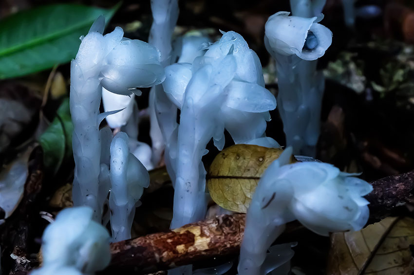 Monotropa uniflora, also known as the “ghost plant,” was spotted and photographed for the first time in the Daweishan National Nature Reserve located in southwest China’s Yunnan Province. (Photo/Courtesy of the media convergence center of Pingbian county)