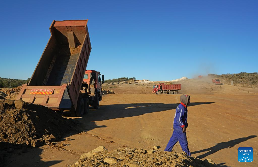 Photo taken on May 9, 2022 shows the construction site of a China-aided project in Windhoek, Namibia. China-aided projects continue to support infrastructure development in Namibia with the latest project being the upgrading of Phase 2B of the Windhoek to Hosea Kutako International Airport road. (Xinhua/Chen Cheng)